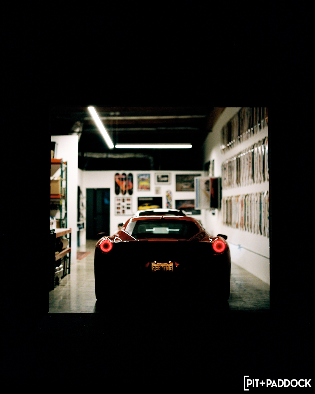 GarageWelt’s picturesque studio space proved to be the perfect spot to make this happen. Nestled within San Fernando Valley, the GW Studio is a 30-40 minute ride Northwest from LA proper. Once there, you’re greeted by GarageWelt’s impressive array of archival skate decks—over 60 in total—that are perfectly arranged on the main gallery wall. The immaculate arrangement here sets the tone for the rest of the space, mixing materials from motorsport and mid-century furniture seamlessly. The studio’s gallery cars often rotate. That practice is an extension of GarageWelt’s newest opportunity to sell curated cars—both from Narek and Eric’s collection and via consignment—to enthusiasts the world over. Each car that I’ve seen exudes the signature GarageWelt spirit, prioritizing cleanliness and restraint over dying trends.