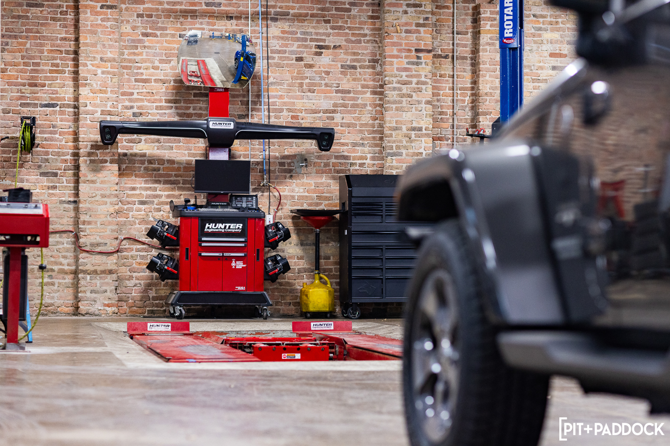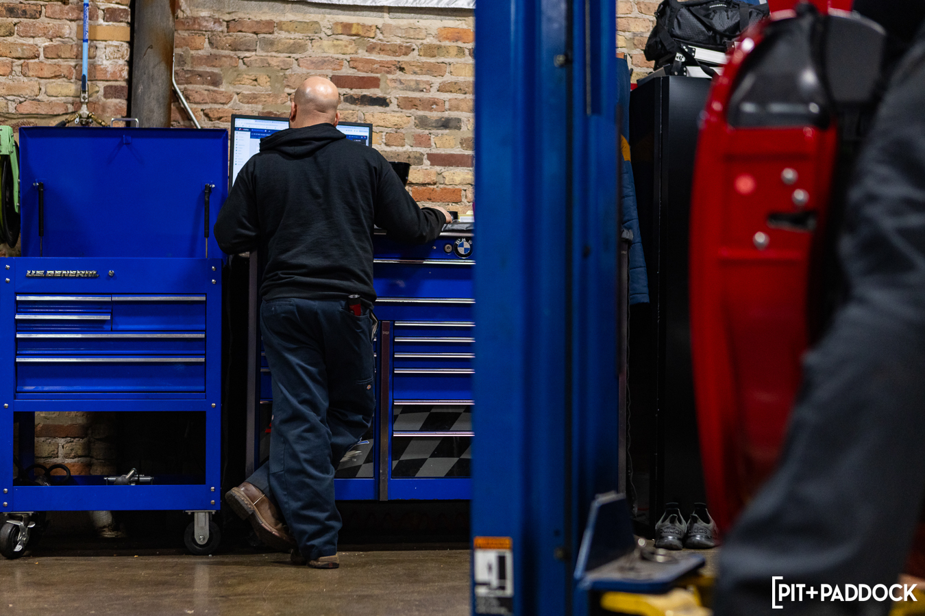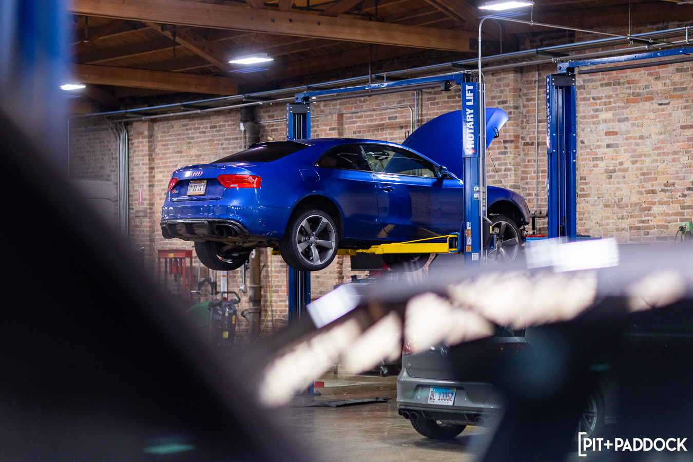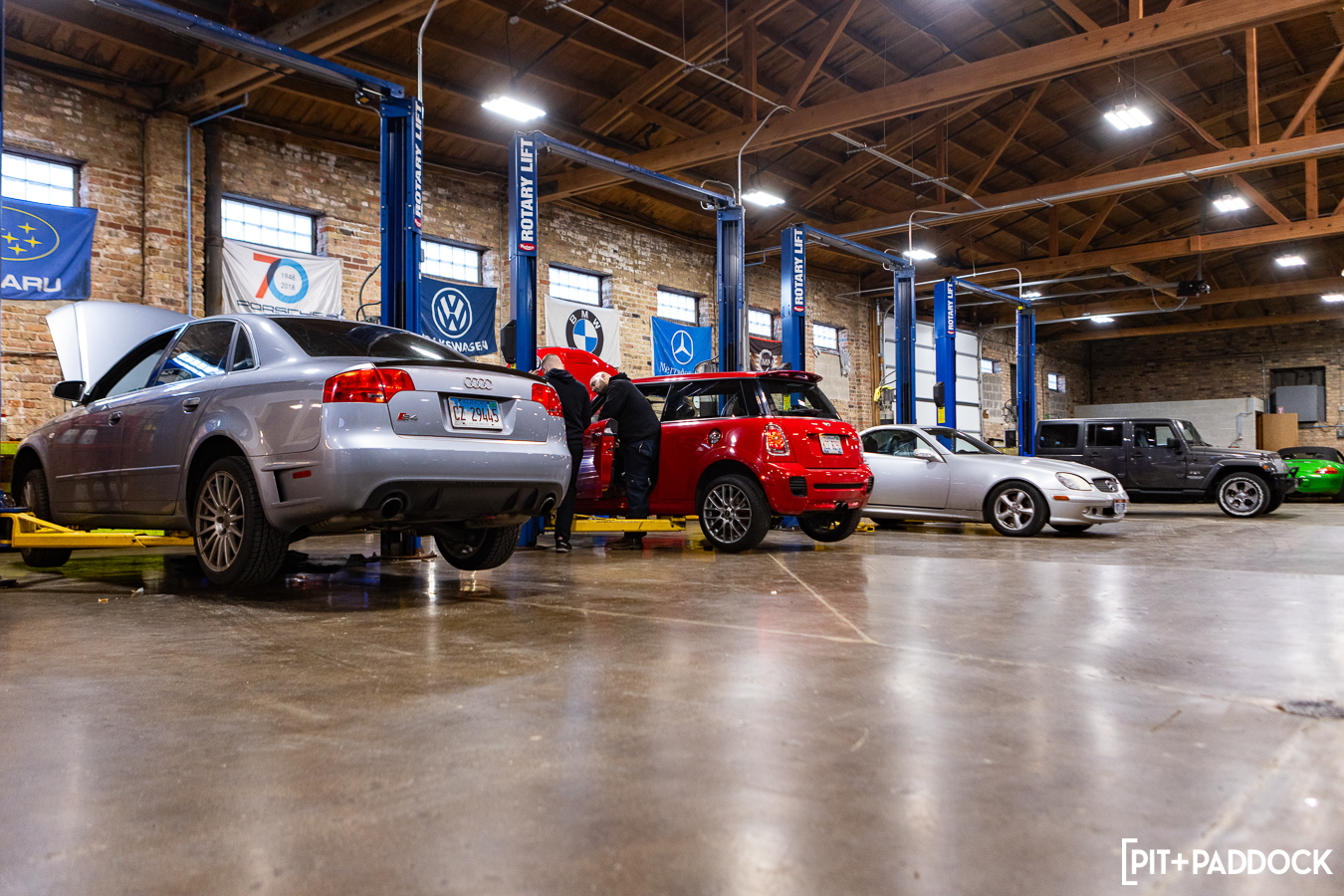 But the urban space is far from a typical shop. As a repurposed building from Chicago’s yesteryear, MPC is a beautiful space with timber trussing, original brick walls, and a large, central skylight that bathes the shop in a soft, ethereal glow. Individual workstations—there are eight lifts, an in-ground alignment rack, a tire mounting station, and a separate office area—are well-lit with high-output LEDs and well-spaced to give everyone ample room to do what they need to do. It may sound like an obvious thing, but I’ve been in enough shops that couldn’t do this properly. The effort to lay the shop’s footprint out efficiently and give each tech a dependable, breathable workspace is another testament to MPC’s commitment to its staff and the cars they work on.