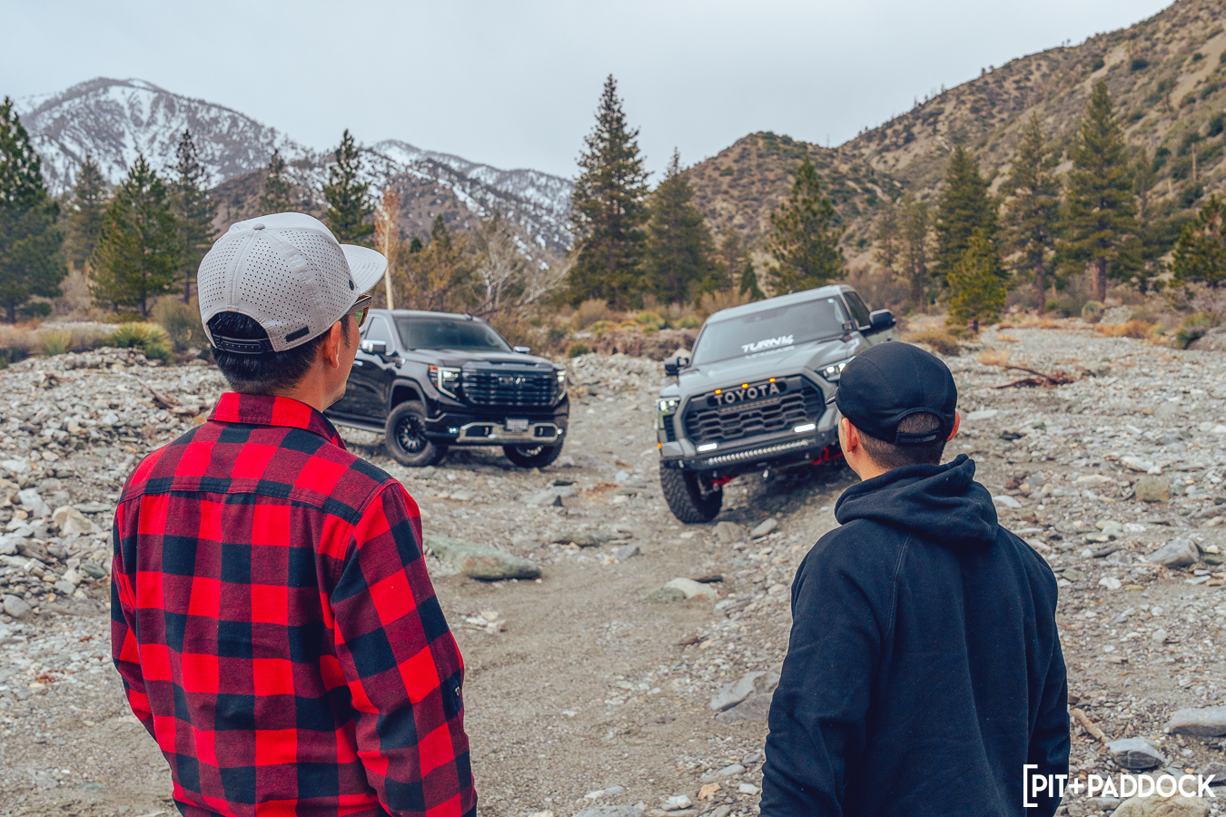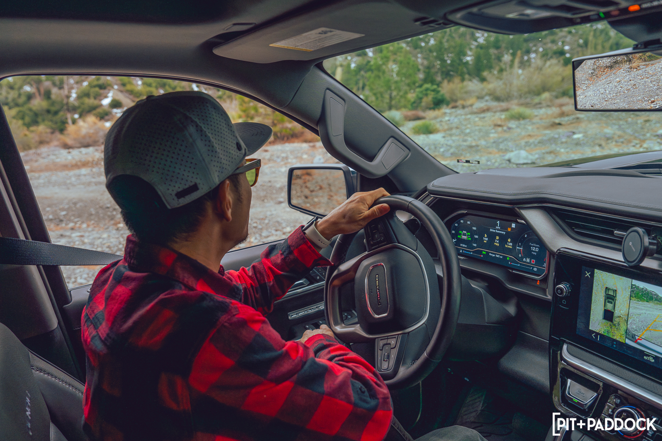 Admittedly, going off-road isn’t nearly as fun alone. The prospect of getting lost or stranded is a pervasive thought, so we thought it best to phone a friend to come with us. That friend was Formula DRIFT champion and current IMSA sensation, Dai Yoshihara. Instead of grabbing the keys to the DAI33, he jumped into his daily driver—a 2022 GMC Sierra 1500 Denali 4WD—and met us off the beaten path.