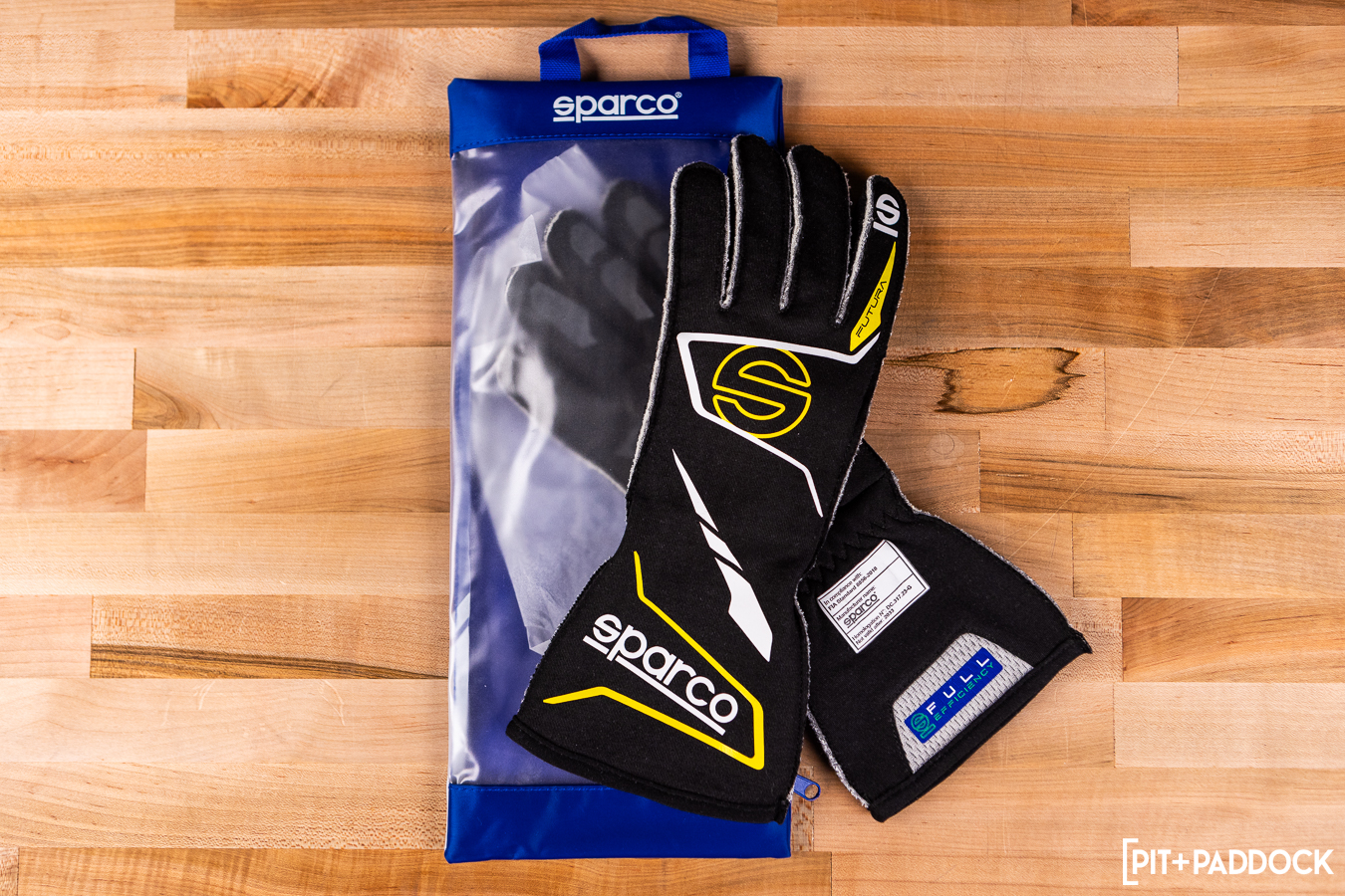 Futura: The Sparco Futura glove is aimed at the future; it’s the first glove in the world constructed from the company’s Full Efficiency technology—an innovative technique for fiber spinning and weaving that has allowed Sparco to tout that at least 51% of its total production comes from regenerated materials. The breakthrough allows the manufacturer to repurpose discarded material sections to achieve an ambitious “zero waste” goal ahead of anyone else in the industry. Like the Lap glove, Futura features “hybrid” finger stitching—a combination of internal and external weave work to net comfort and durability equally. The Futura glove gives nothing up on the safety side, despite the new construction method. This glove is FIA 8856-2018 and SFI 3.3/5 approved and comes in four colorways: black/white, black/yellow, black/green, and white/black. From all the options, I really like the black/yellow combo that we have here; it gives off some subtle Tron vibes and echoes its green initiative without being too shouty about it.