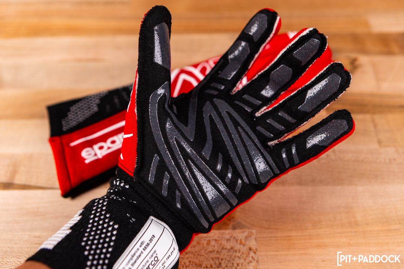 All of the Sparco gloves we’ve amassed here are FIA-approved—the strictest guidelines currently available in the motorsport industry. The latest FIA clothing rating (8856- 2018) will protect you from 2nd-degree burns for up to 9.5 seconds on the palm and 13 seconds on the rest of the gloves. It may not sound exceedingly lengthy, but that window, against a 1500°F flame, means the difference between a survival story and dire fate. For that reason, the FIA stamping is worn with pride. Every FIA-certified Sparco glove is adorned with an FIA label on the exterior of the cuff and an FIA hologram on the interior of the cuff (beneath the homologation label).