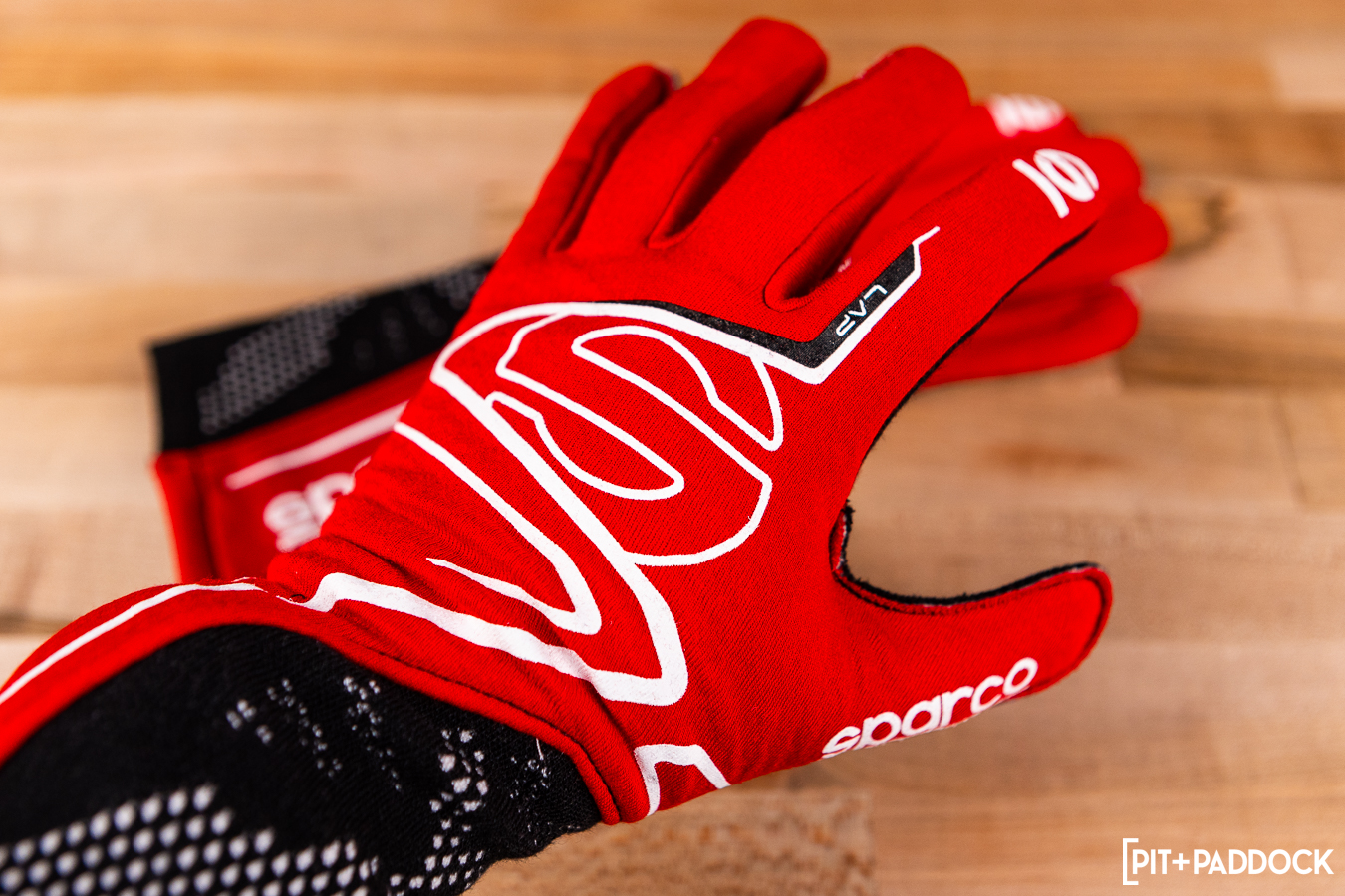 I moved up to Sparco’s Lap glove next. The red/black colorway with the unique contrast wrist section attracted me, and putting the glove on only accentuated that impression further. The pre-curved hybrid fingers were an immediate improvement. It felt like the glove was hugging the natural shape of my hand rather than fighting against it. Back to back, the Lap glove has more grip all-around versus the Land+, making you feel more intimately connected to the wheel. This is the glove I’d pick for a great all-rounder.