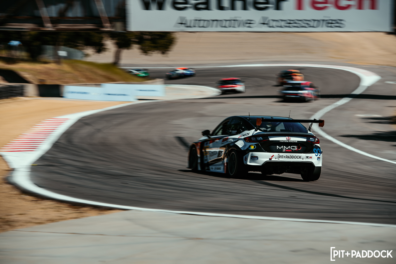 The Laguna Seca race weekend kicked off in the best way possible—the #6 sister car, in the hands of Ortiz, snagged P1 in qualifying for Saturday’s contest. The #93 Pit+Paddock FL5 Civic Type R TCR was close, tallying P6 in the capable hands of Dai Yoshihara. Although he’d driven here before in time attack equipment, this weekend would be the first time he’d go wheel-to-wheel against IMSA competitors.