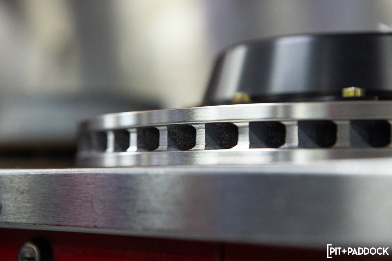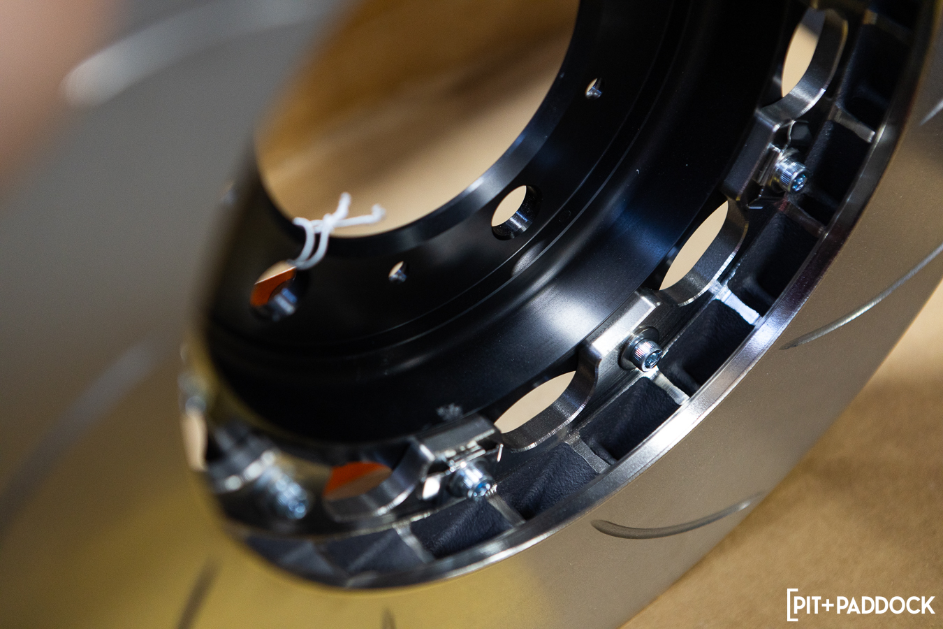 GiroDisc has also put exhaustive thought into its floating mount system. Its version utilizes 12 high-strength steel alloy, cadmium-plated drive pins of GiroDisc’s own specifications. The pins are secured with 12.9-class cap screws and hardened washers. The company has crucially engineered around one of floating rotors’ biggest side effects: they often rattle when cold. There are small, but significant anti-noise spring washers on each of the 12 pins. The resulting space allows the rotor to grow with heat expansion but eliminates the incessant rattle that floating rotors typically have. This float also allows the rotor to self-center between the pads.