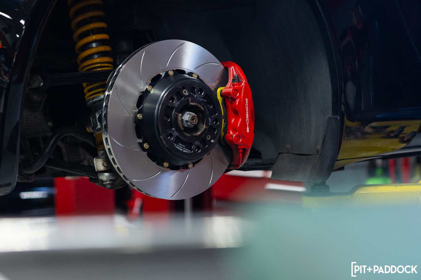 In the case of a 997.1 GT3, 6/4-piston monoblock calipers come standard on both steel and optional PCCB stoppers. Swapping these for aftermarket versions (effectively the same configuration) is relatively fruitless. Porsche’s robust factory calipers have made a perfect case for GiroDisc’s rotor solutions and it’s no secret why it’s one of the most devoted marques to the brand.