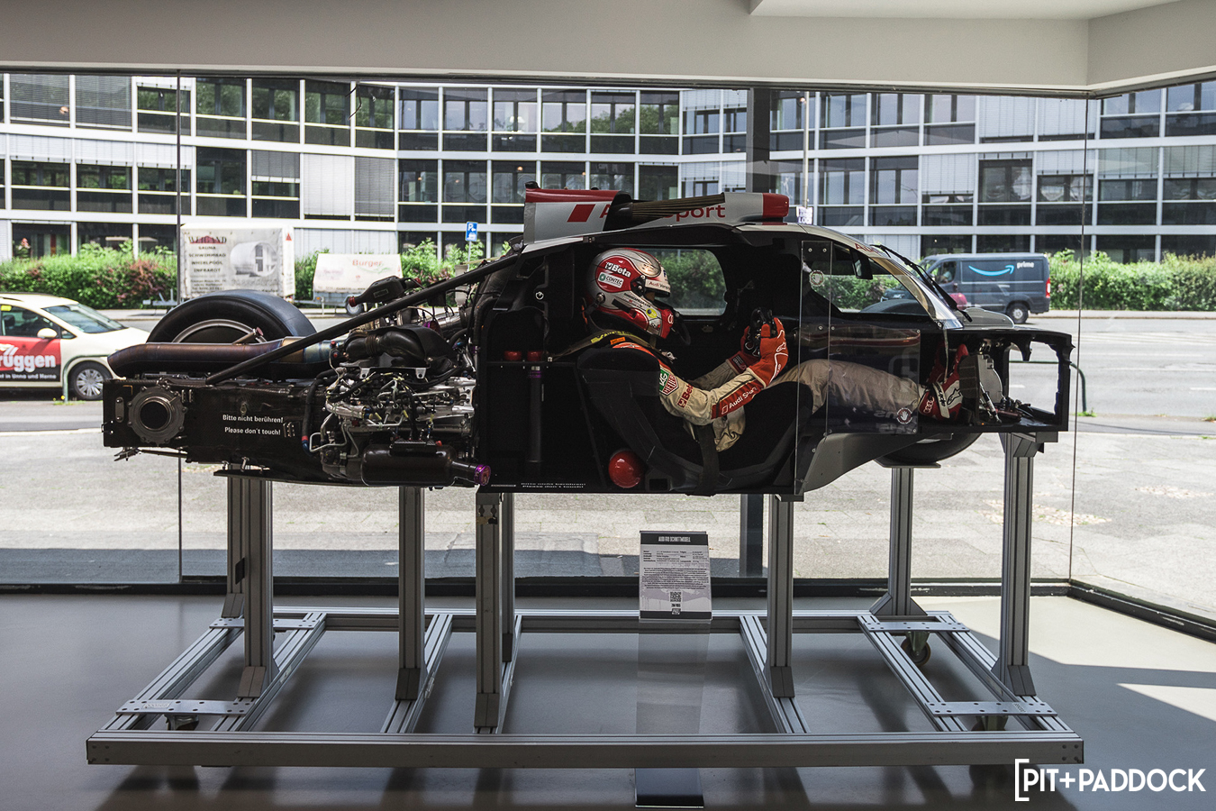 Once the lift doors opened, I was greeted by this beautiful race car from Audi: an R8 LMS GT2 Color Edition. As if the Audi R8 LMS GT2 weren’t special enough, Audi decided to celebrate their success on the Monza circuit in the GT2 class by releasing six Color Editions. These cars, while mechanically identical to the customer versions with a robust 640 horsepower, boast six unique color schemes.