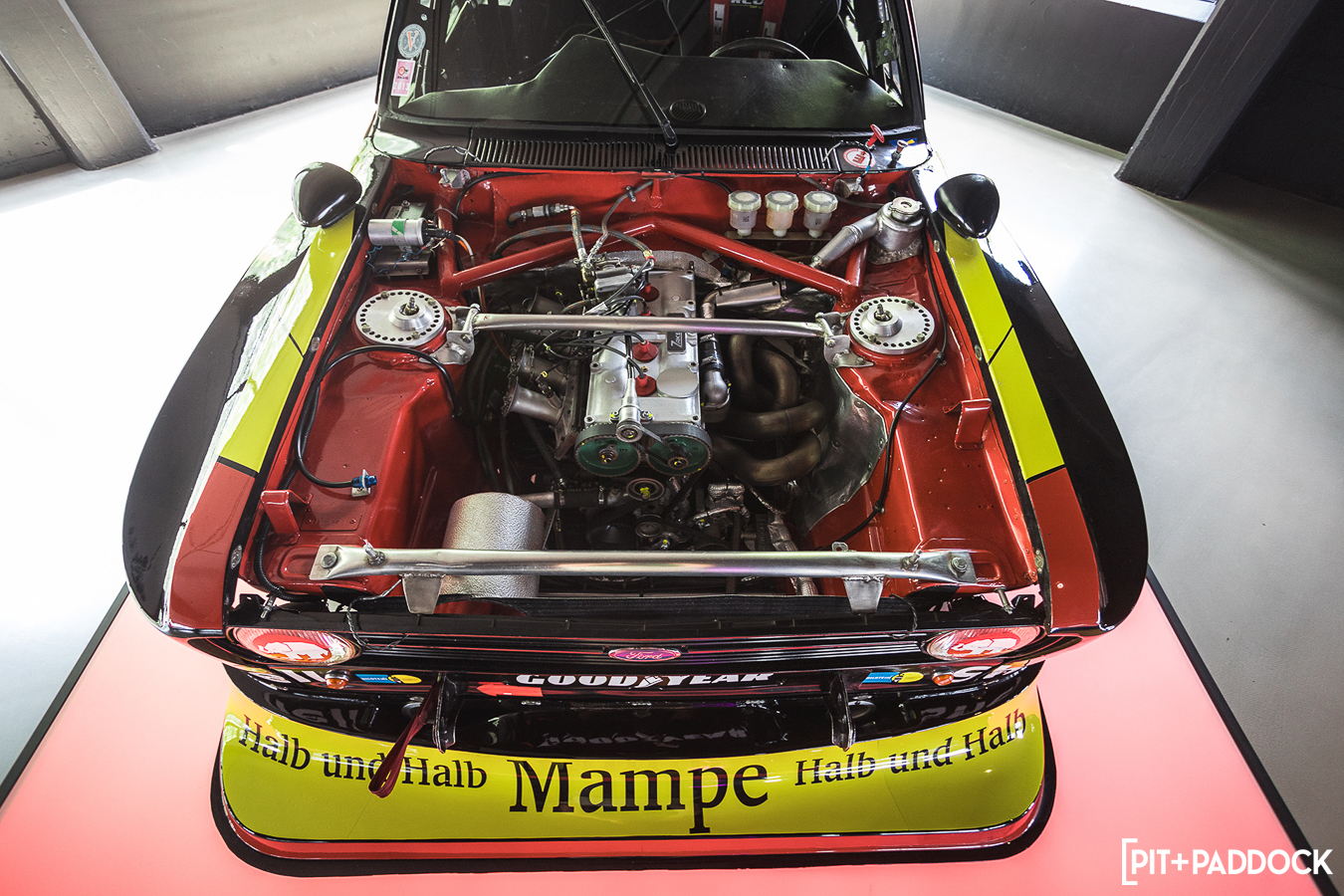 Further into the floor plan, I met a special breed: a Zakspeed Ford Escort Group 5. Only five of these were ever made, this being one of them. This was affectionately dubbed “Der Mampe” by the Germans. Mampe, one of Germany’s premier schnapps producers, sponsored this Ford Escort Mk2 back in the ’70s.