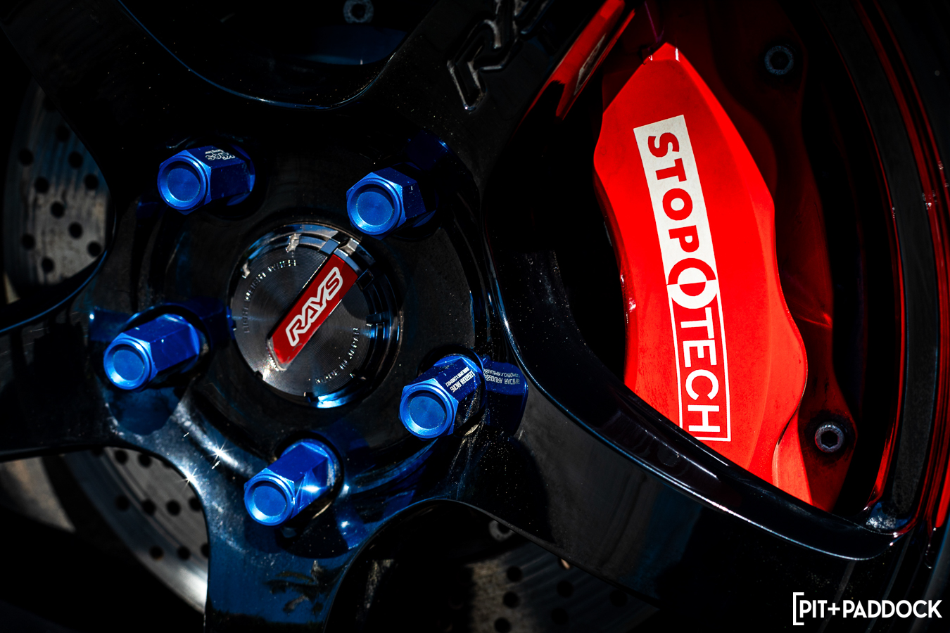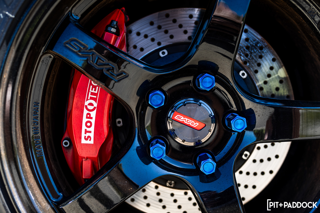 Even though the NSX was a daily-driven street car, Gerald didn’t want to compromise on his vision for how his dream car should look or how it should drive. To get low over the 17-inch front and 18-inch rear Volk Racing SE37Ks, Gerald opted to use a PannAuto air cup coilover system with Swift springs and AirLift Performance management. A StopTech big-brake kit was also added along with strut bars to round out the chassis updates.