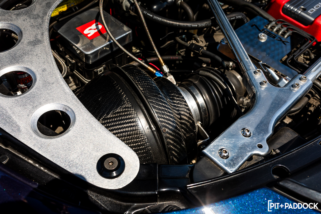 The car went through multiple iterations, including being wrapped both in pink and blue shades before Gerald decided to go through with a respray in BMW Individual Tanzanite Blue Metallic several years ago. At the time, the paintwork covered Advance GT front fenders paired with DaliRacing rear fender flares, as well as DaliRacing’s carbon-fiber rear diffuser and trunk lip spoiler. The huge Big Country Labs carbon-fiber rear wing speaks the same language as the Mode 4 front bumper and aggressive, angular UbeyMade canards. Together, these components and many others gave Gerald’s NSX a particular presence on the street.