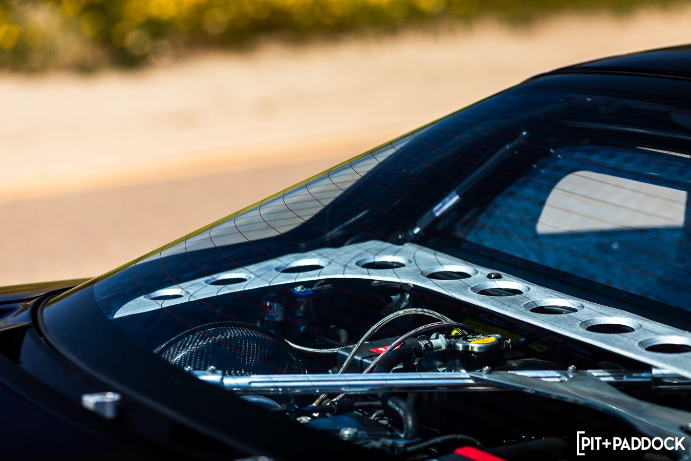 Inside the cockpit, Recaro Pole Position seats in red scream Type R, while Takata harnesses and a Carbin roll bar complete the race-inspired look. They also serve to keep the driver firmly secured in proximity to the Momo steering wheel in the canyons and curvy backroads outside Los Angeles. In addition to duties as a daily driver, Gerald regularly took his NSX out for proper canyon drives in this guise. It may also come as no surprise that the NSX was brought to a variety of shows and events in this configuration as well.