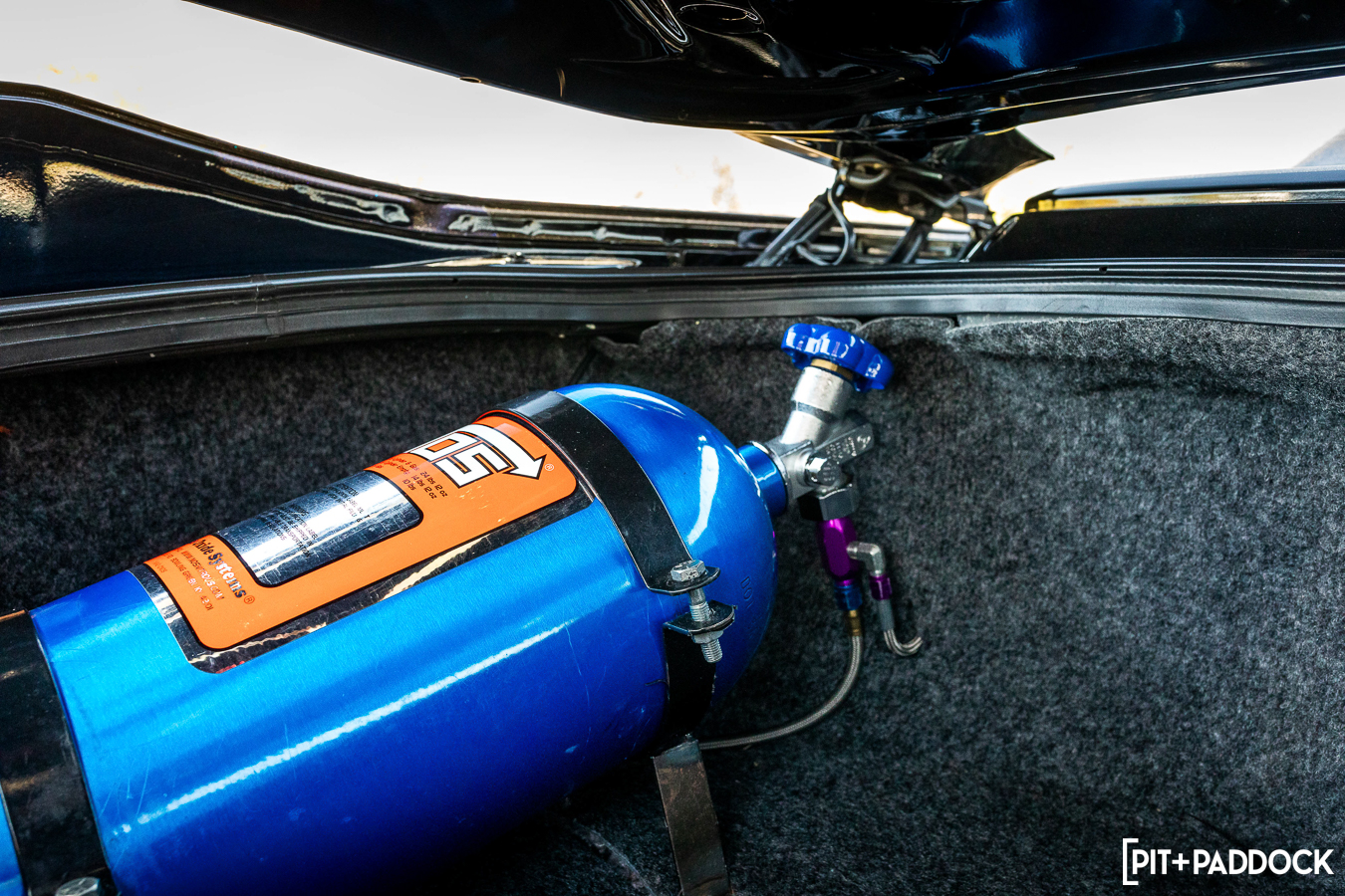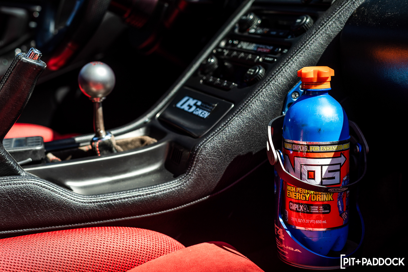 Performance is bumped up by several bolt-ons including a Cantrell intake funnel mated to a PannAuto carbon-fiber intake assembly, DC Sports headers that feed a DaliRacing exhaust, and a 75-shot of nitrous oxide to complete that old-school street racer feel. A DaliRacing performance chip helps keep all the upgrades working together, and an OS Giken clutch assembly also has been installed.