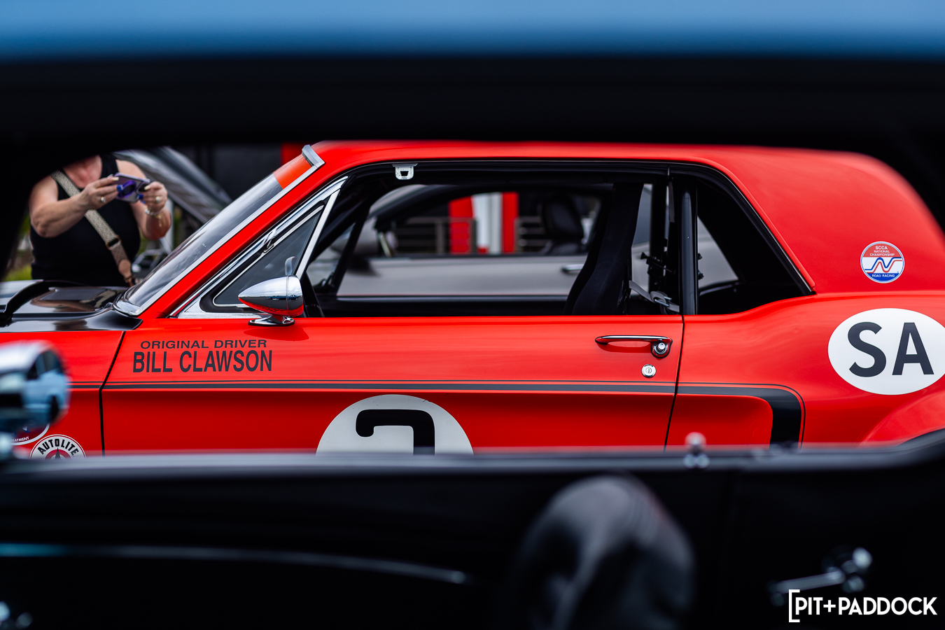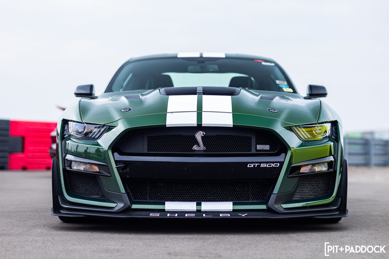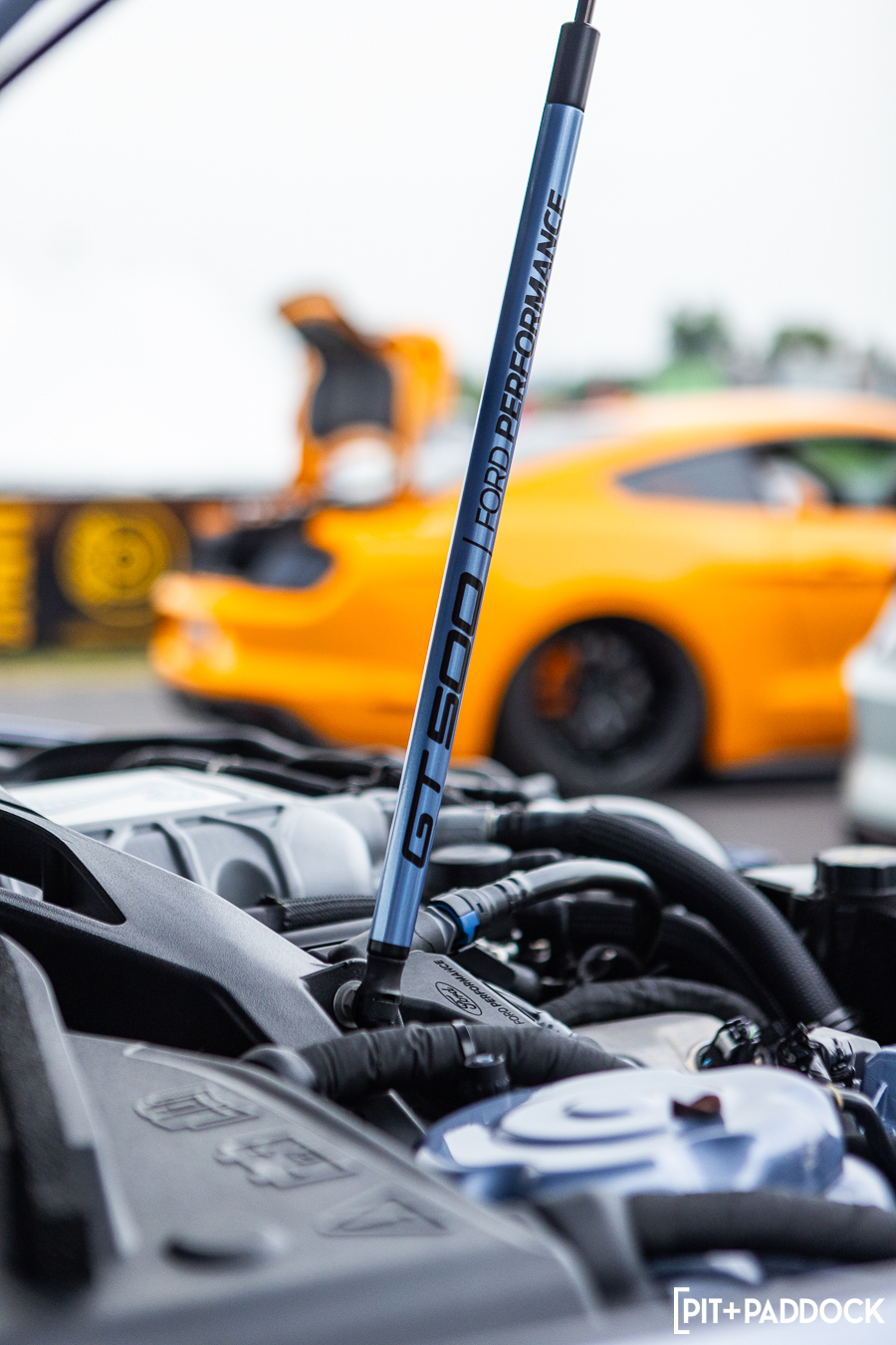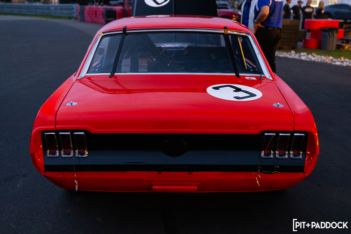 At the beginning of Pit+Paddock, we were admittedly very intentional about integrating displays that looked like starting grids; it helped us drive the point home about where our brand intersected. Since then, we can admit that it just looks incredibly cool. We lined the Mustangs up by generation—old to new—so that when spectators rolled through the gates, it’d be their first impression.