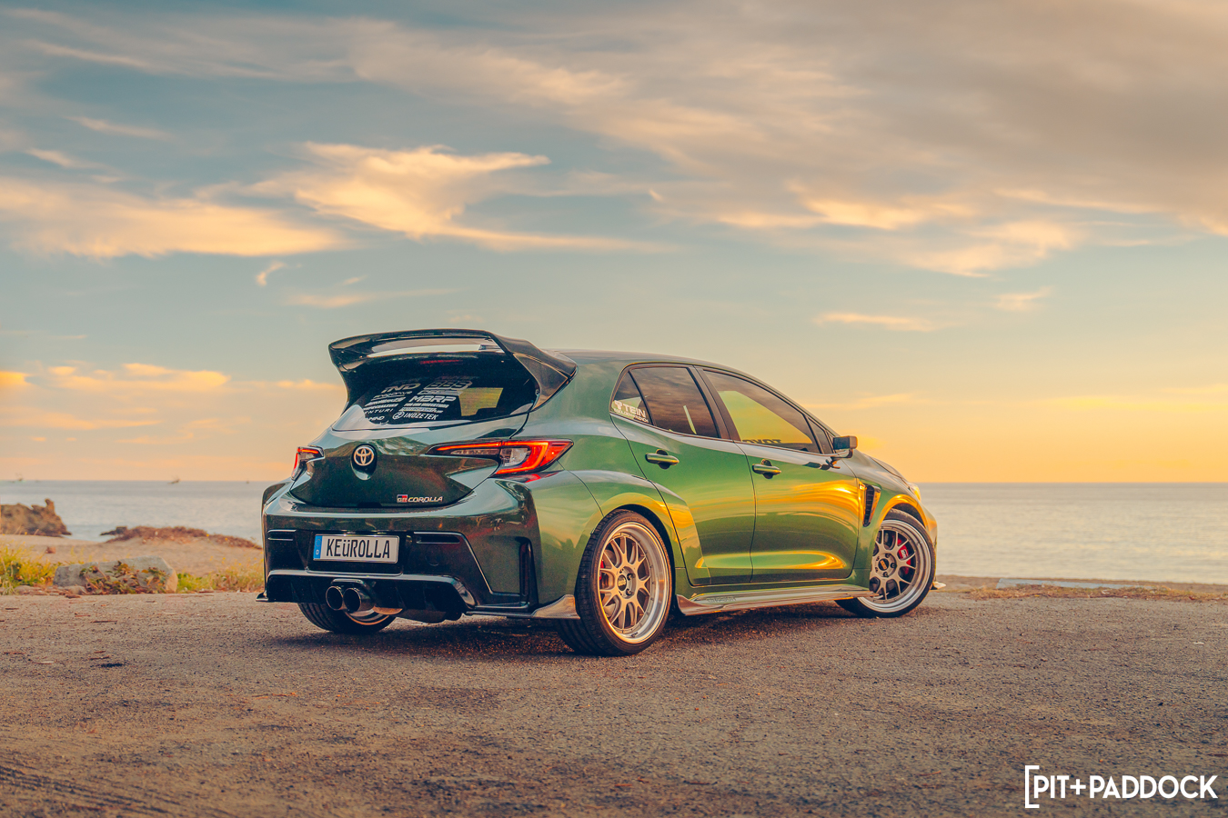 KEüROLLA is a fun wordplay representing ‘European Corolla’ or ‘Euro Corolla,’ which perfectly captures the essence of this build. It’s our take on what a European-inspired build design would look like applied to Toyota’s hot hatch creation. To give it an extra twist, we added the letter ‘U’ with an umlaut for a bit of a German flair. Whether or not we fully nailed the pronunciation depends on who you ask, but it definitely adds to the charm!