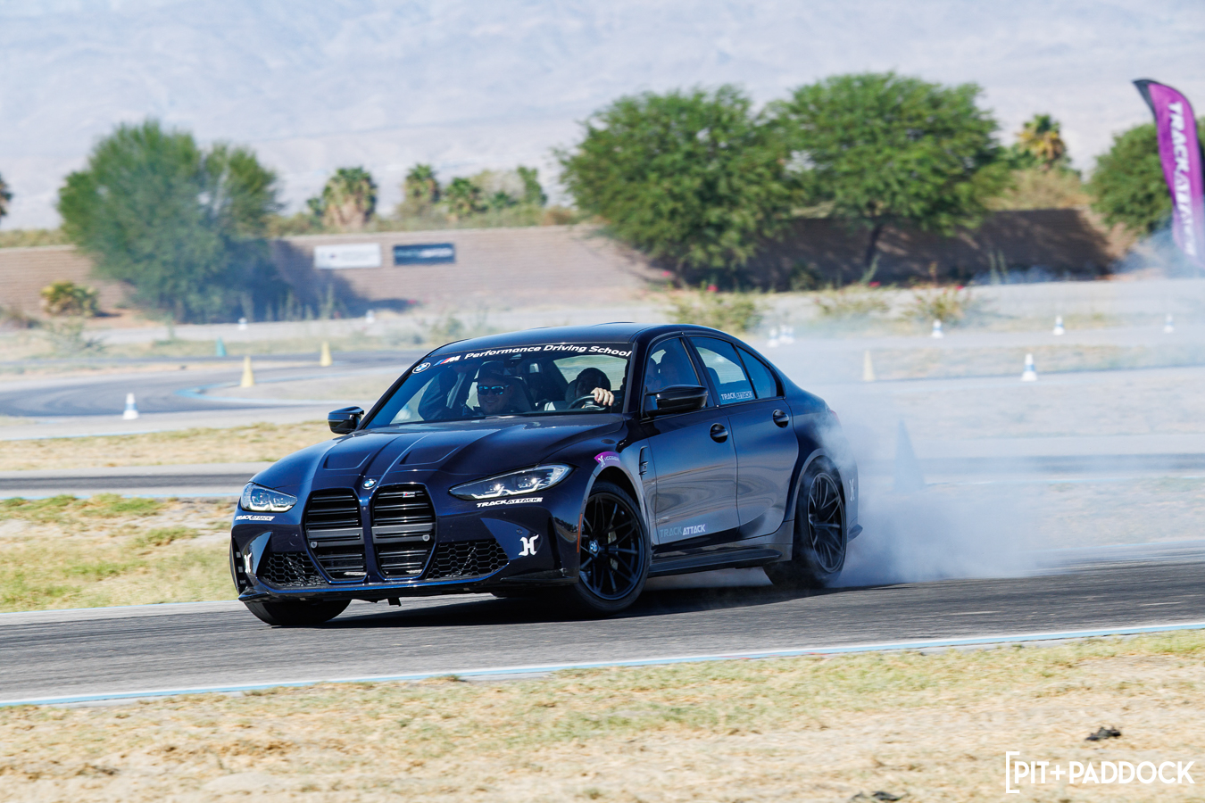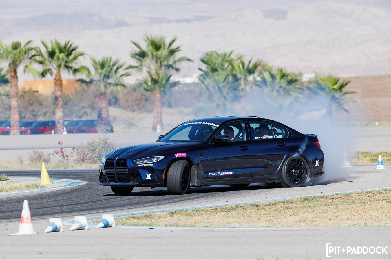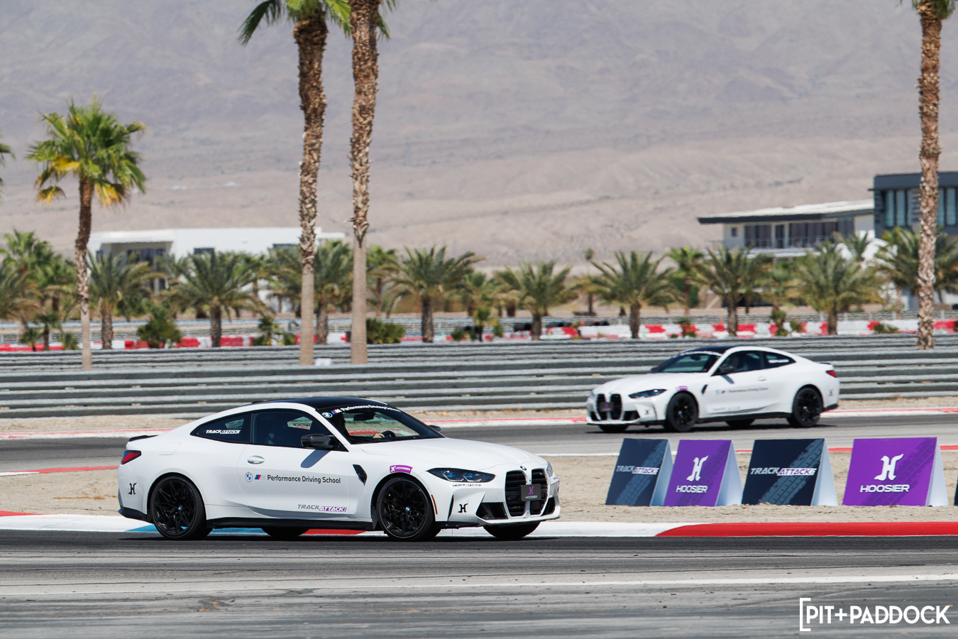 That confidence was timely because we’d be driving M4s on Thermal’s 2.0-mile South Palm track in a few minutes. Here, we were able to combine our accrued experience into a full lap behind a seasoned instructor. The lead-follow 30-minute session would also allow us to get a sense of how the Hoosier TrackAttack Pro performed over time—how it heated up, responded after various heat cycles throughout the day (we were one of the last groups), and how greasy the tires got during the session.
