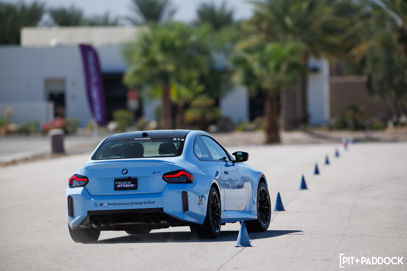 I think my cluster—Group 3—got the luckiest in terms of our progression through each driver module. We started the day by pitting the Michelin Pilot Sport Cup 2 R, one of the most aspirational tires on the market, against the new Hoosier on a “brake and avoid” test. Being able to lean into the G8X M3/M4’s brakes confidently would be a skill we’d carry through to every exercise after that, so getting acclimated to how communicative the TrackAttack Pro was under braking and response to rapid steering input was impressive.