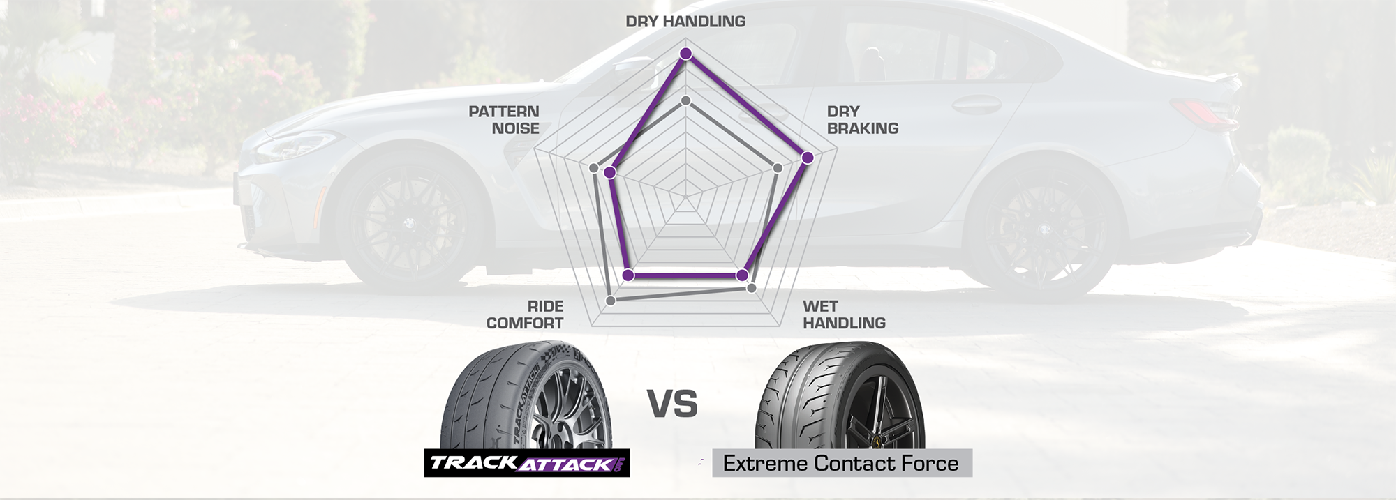 Within the Continental extended family, the TrackAttack Pro offers considerably higher levels of dry handling and braking versus its Extreme Contact Force cousin. As a more track-focused compound, the TrackAttack Pro is understandably less adept in wet conditions than the Continental and introduces marginal amounts of NVH into the cabin.
