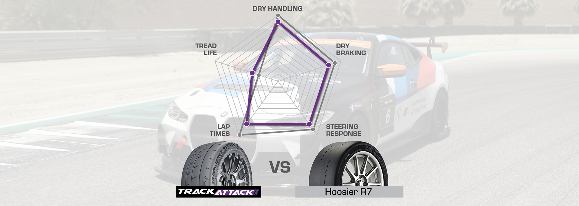 But comparing it with its older Hoosier brother—the R7—is where things get much more interesting. The TrackAttack Pro gives up very little to its nearly slick compatriot in virtually every measure, but because of its 200TW designation, it will last longer. I don’t think I’ve ever thought to compare a street tire to an R7, but it’s clear that the TrackAttack Pro was conceived to be a very serious player.