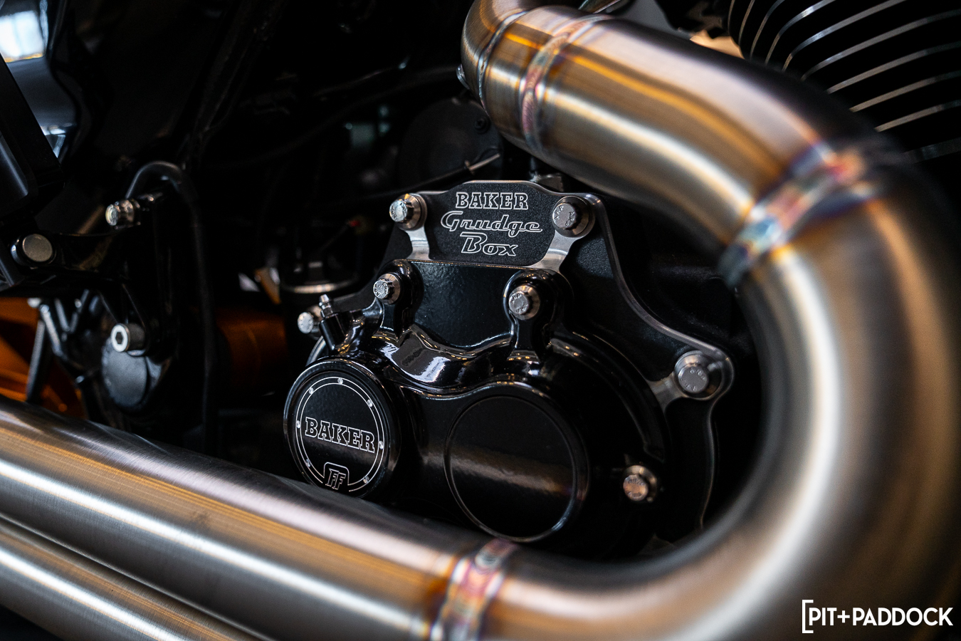 An Alloy Art chain conversion kit was a must to cope with the extra grunt, and the Speed Dealer Customs swingarm—anodized gold for good measure—draws your eye towards the critical upgrade.