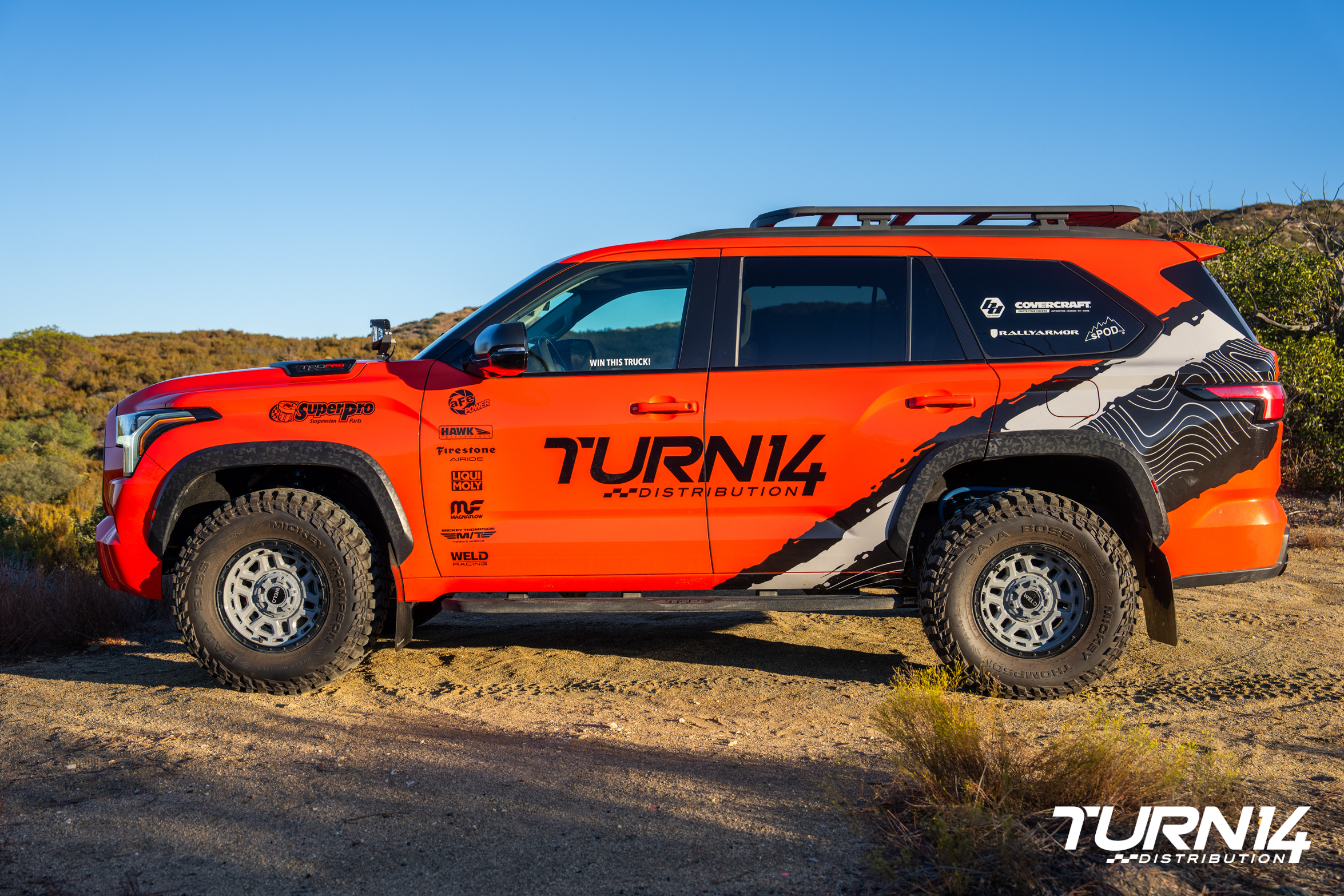 The T14 x SuperPro Toyota Sequoia TRD Pro is proof of what’s possible when the right partners, the right components, and a clear vision come together. Turn 14 Distribution extends a sincere thank you to every partner, builder, and enthusiast who followed this project from concept to completion.